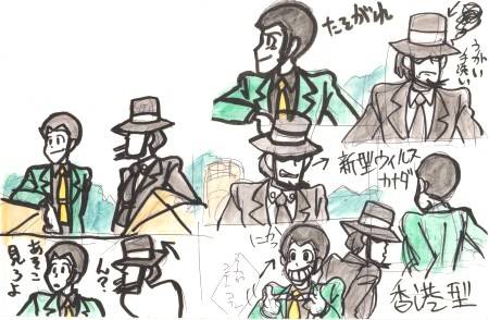 これを描いてた時に、新型インフルエンザ感染の疑いの日本人がいたとかで、深夜に緊急記者会見があったので思わずメモしてしまった
